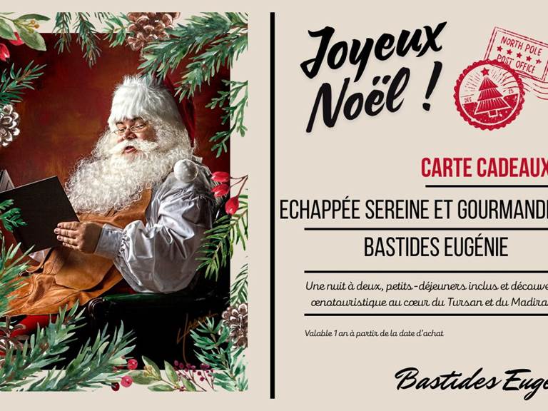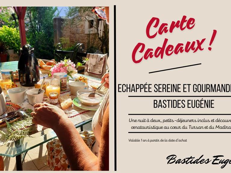 Cette carte cadeau exclusive propose 4 jours et 3 nuits pour deux personnes dans notre meublé Expression, ou notre meublé Tursan, au sein de la bastide de Geaune, et une découverte accompagnée de la région, pensée comme un véritable voyage intérieur et sensoriel.